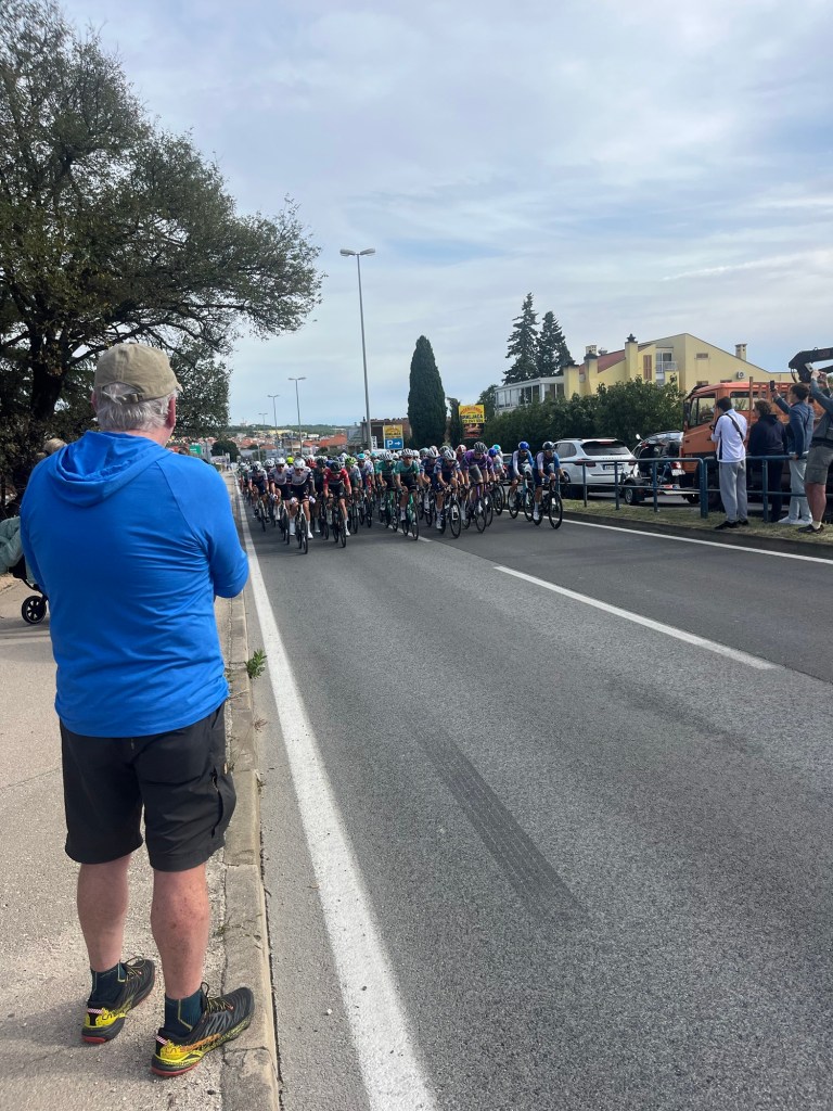 Spirits were high as we left our last island, Pag, and headed towards a medium-sized city – Zadar. Given our cat and mouse game with the Bora, it was the most logistically wise place to stay a day or two and plot our routes out. On our ride into town, just as we had come back onto a main road from a little gravel section, we rolled up on a group of four bikepackers. As we approached, I noticed an REI label on a piece of clothing, and instantly I thought – these are Americans. We had seen almost no Americans, we were in European holiday country after all, let alone any American cyclists. So this was really quite thrilling. It turns out they were four Alaskans – Jim, Pat, Doug and Jessie – on a three week trip. They were all in their late 60s to early 70s, living my future dream. They were also loosely following the same route as us (Trans Dinarica), and were also heading to Zadar to hide out the wind. We met up with them again the next day in Zadar to catch Stage 2 of the pro cycling race – the CRO race.